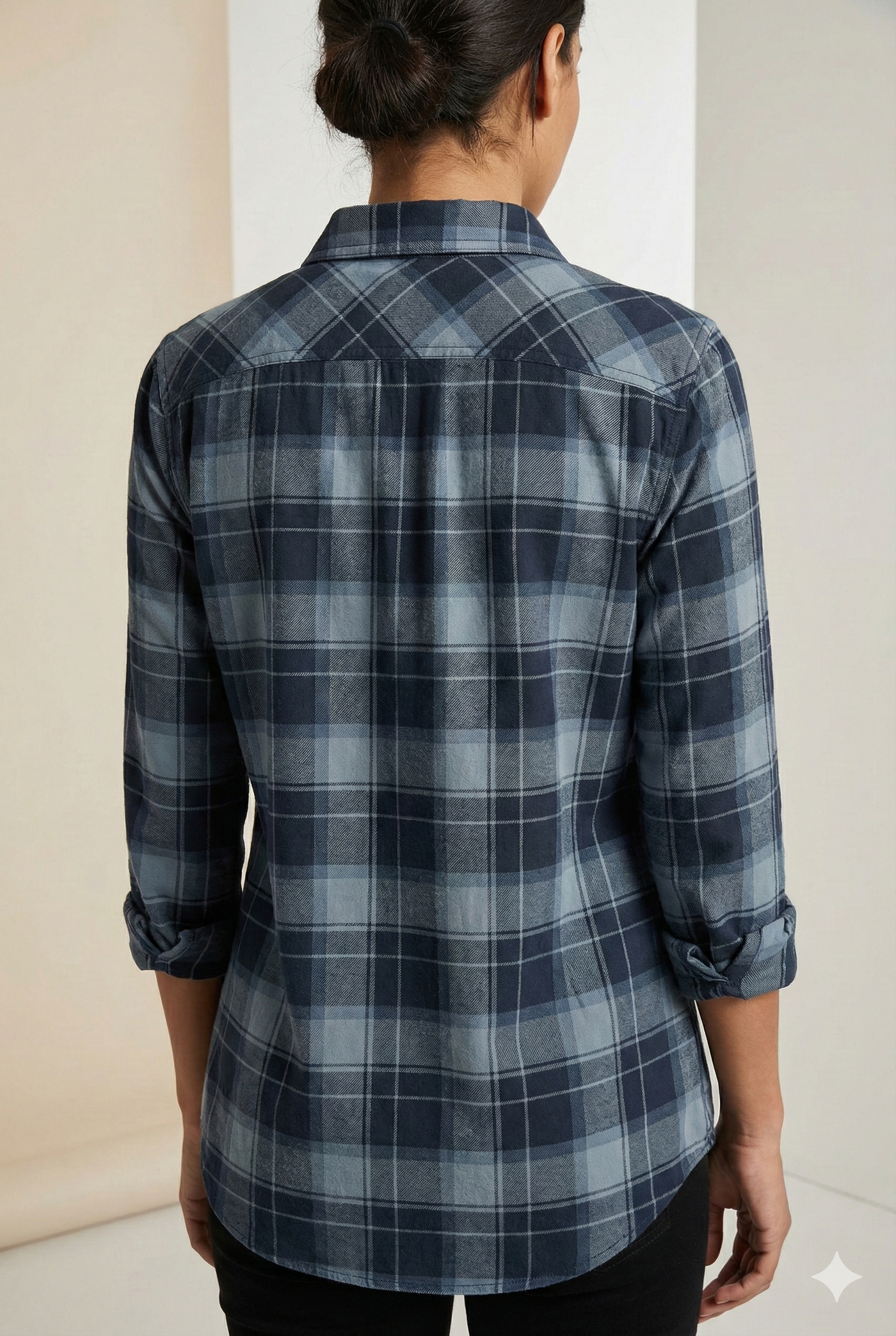 Elevate your everyday style with this Women’s Navy & Grey Checkered Casual Shirt, designed for effortless comfort and timeless appeal....
